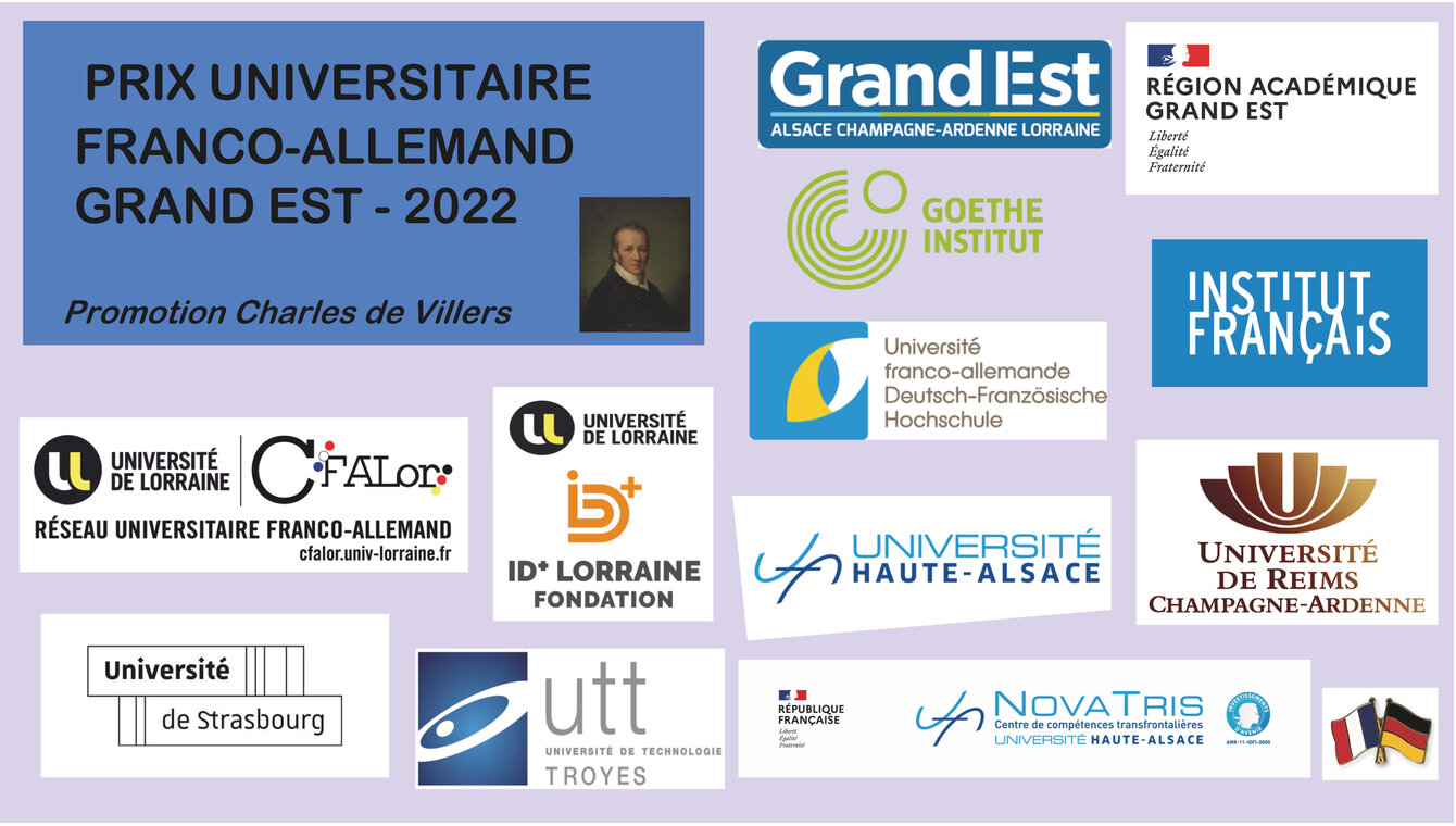 La cérémonie de remise du Prix universitaire franco-allemand Grand Est, Promotion 2022 Charles de Villers aura lieu le vendredi 21 janvier 2002 en ligne entre 14h et 17h.