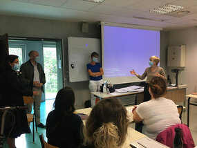 Madame Elisabeth Laporte, rectrice de l’académie de Strasbourg, s’est rendue sur le site de Sélestat puis sur le Campus de la Meinau jeudi 26 août 2021 pour assister à cette rentrée et venir à la rencontre des stagiaires.
