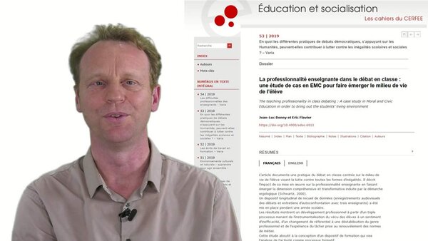 Jean-Luc Denny présente brièvement un article lié à une étude portant sur des débats en classe d'enseignement moral et civique.