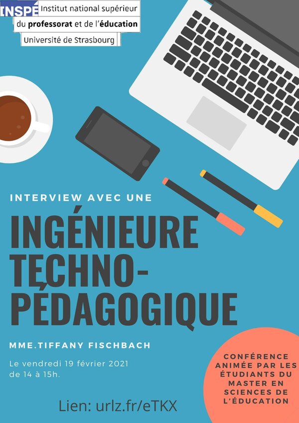 Les étudiants de master 1 Sciences de l'éducation vous invitent à découvrir les métiers liés à l’ingénierie de formation. Invitée : Tiffany Fischbach, ingénieure techno-pédagogique "Vous êtes resté connecter et nous vous en remercions. Nous vous attendons donc le vendredi 19 Février à 14h00…