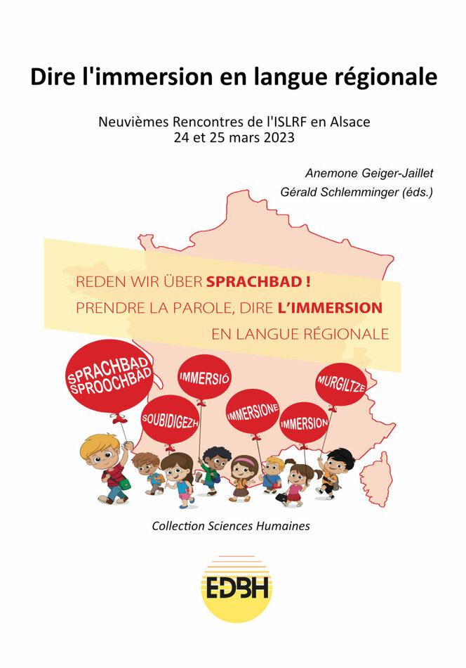Geiger-Jaillet, Anemone & Gérald Schlemminger (dir.)(2024).Dire l’immersion en langue régionale. Neuvièmes Rencontres de l’ISLRF en Alsace, 24 et 25 mars 2023. Strasbourg : Éditions de Bonne Heure. 276 p.